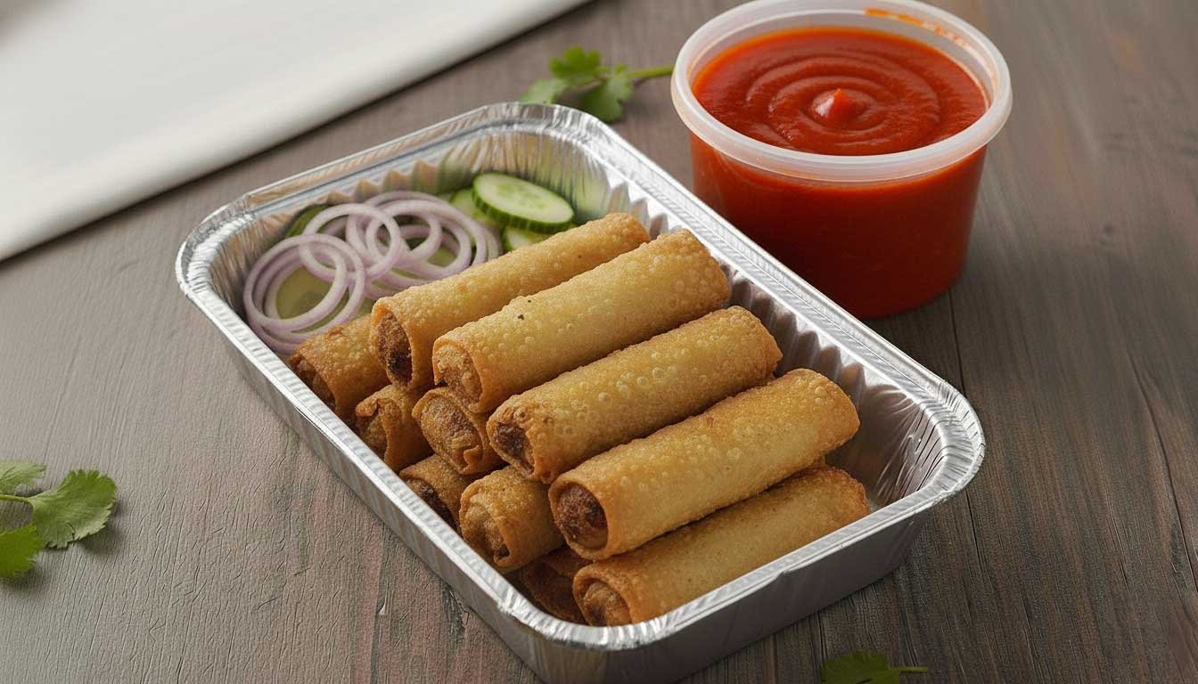 Crispy, golden-fried pastry rolls filled with a savory mix of fresh vegetables, wrapped and fried to perfection. A classic appetizer with a satisfying crunch in every bite.
