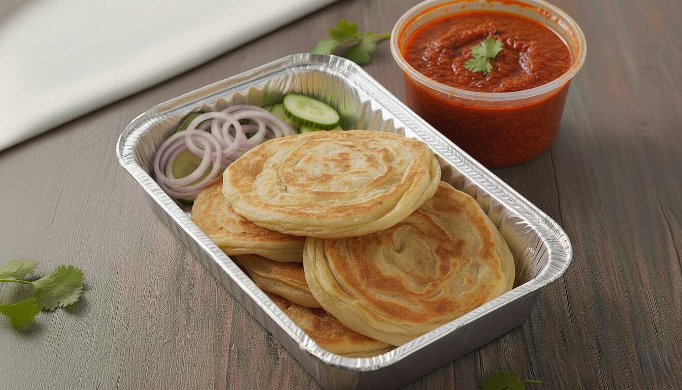 Lightly crisp Indian flatbreads served with spicy, tangy sambal sauce. A bold and flavorful Malaysian classic, perfect for dipping and enjoying with every bite.